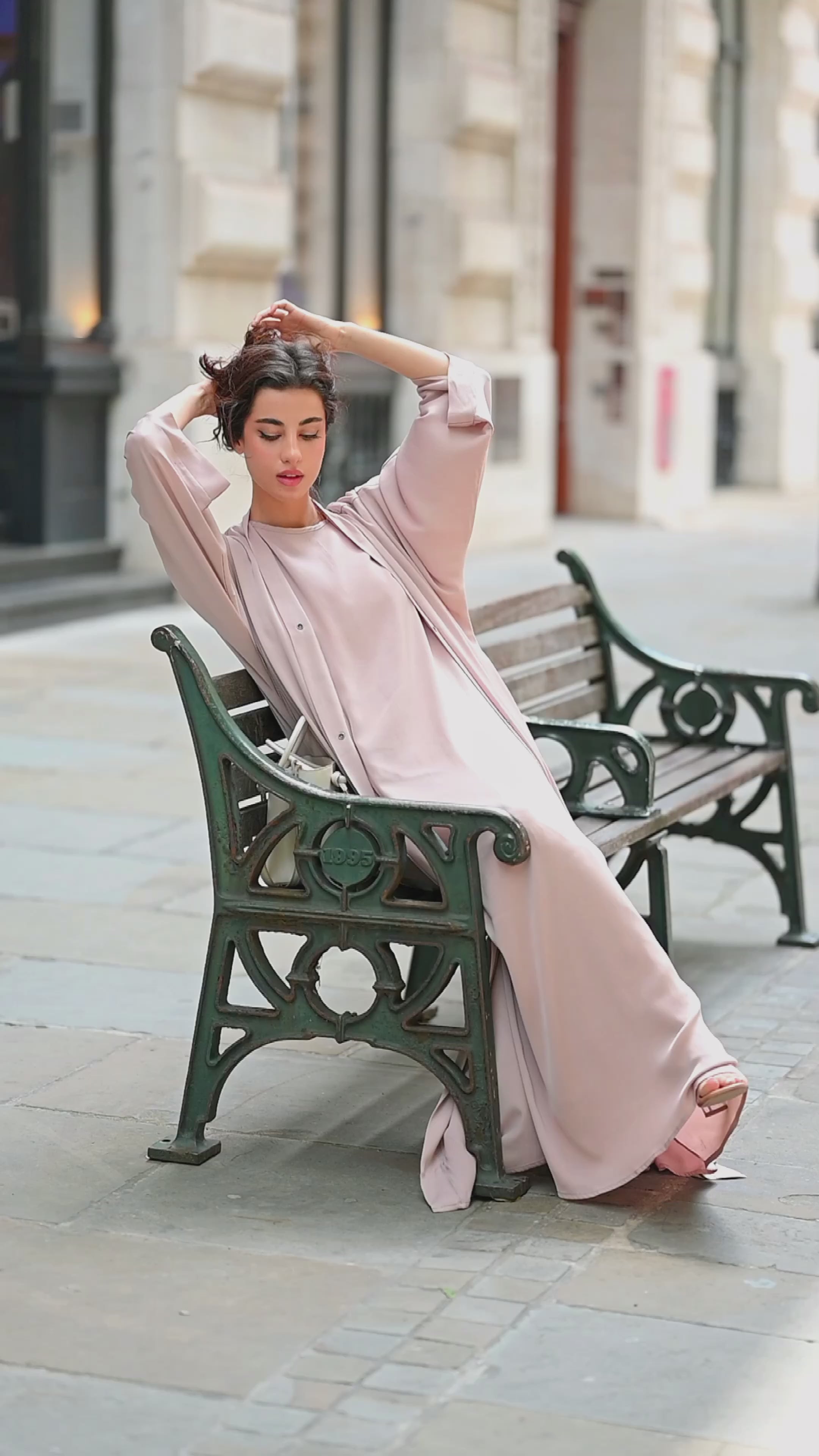 - Luxurious two piece set featuring a sleeveless slip dress and matching open abaya with belt.